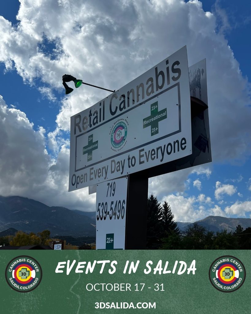 There’s plenty of October left, Salida! There’s still time to soak up the season with some amazing local events — and we’re here to help you make the most of it! Whether you’re here for the art, the eats, or the autumn air — Salida’s got something for everyone. Swing by 3D SALIDA before or after the festivities and keep the good vibes rolling. #3DSalida #SalidaEvents #ColoradoCannabis #CommunityVibes #SupportLocal #SalidaArtWalk #FallInSalidaRead More Oct 16, 2025